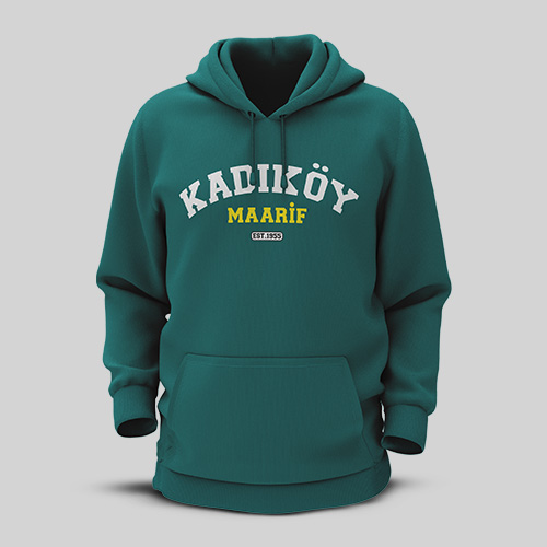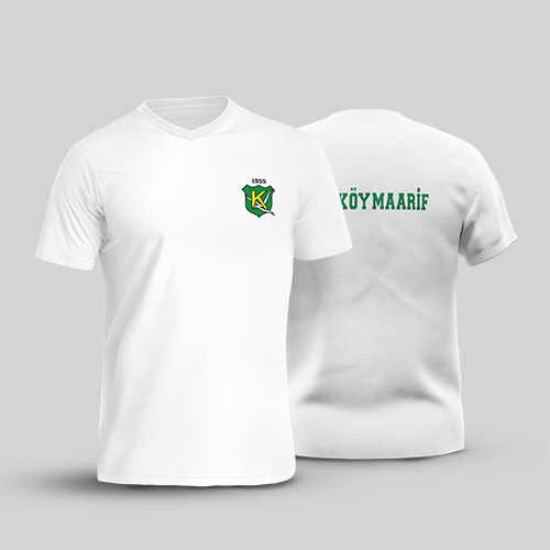Beyaz renkte, önünde KAL logosu, arkada yeşil Kadıköy Maarif yazısı bulunan penye t-shirt.